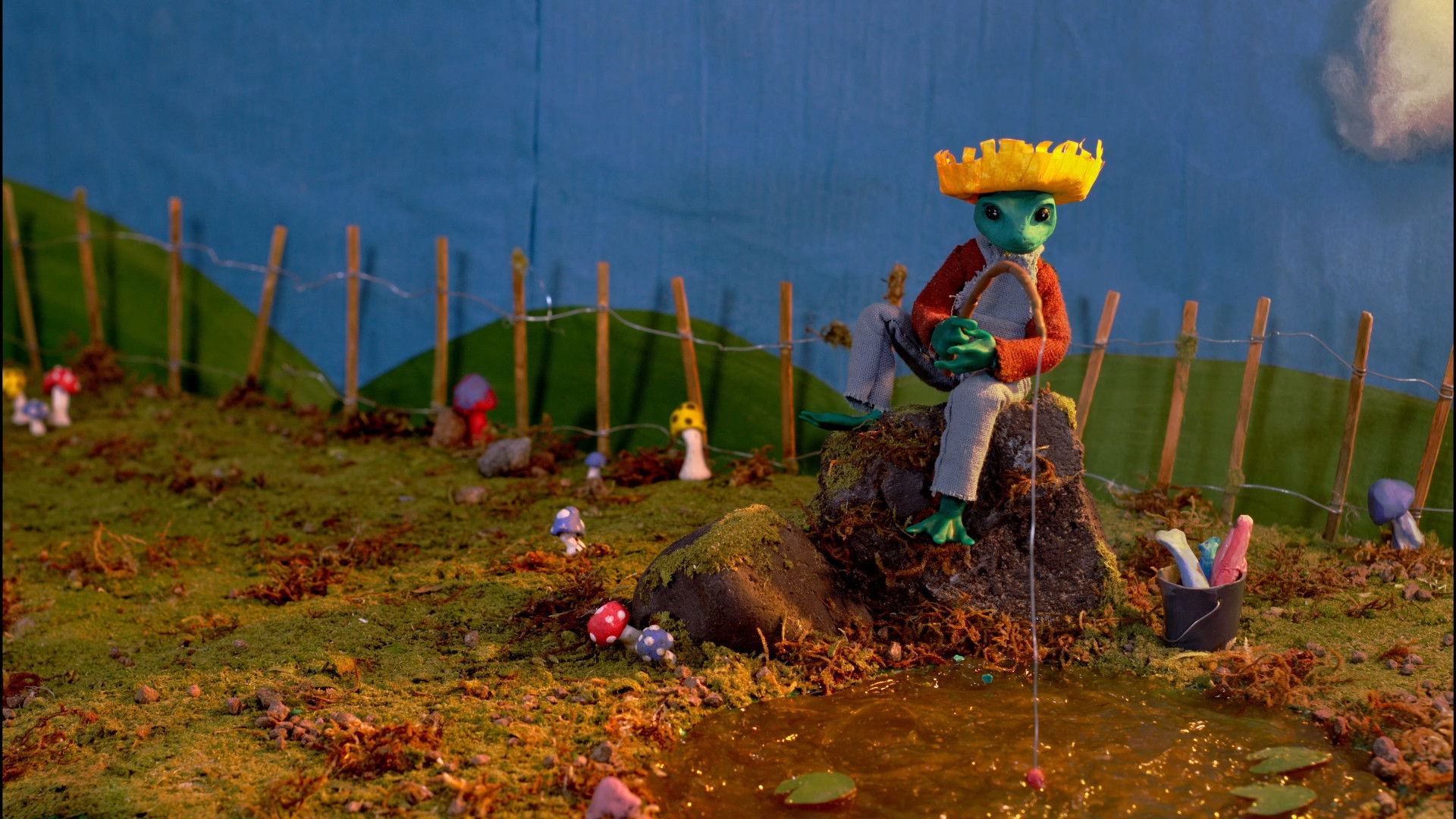 A little frog falls asleep after a long day of work on his farm, but is awakened from his slumber by a mysterious noise.