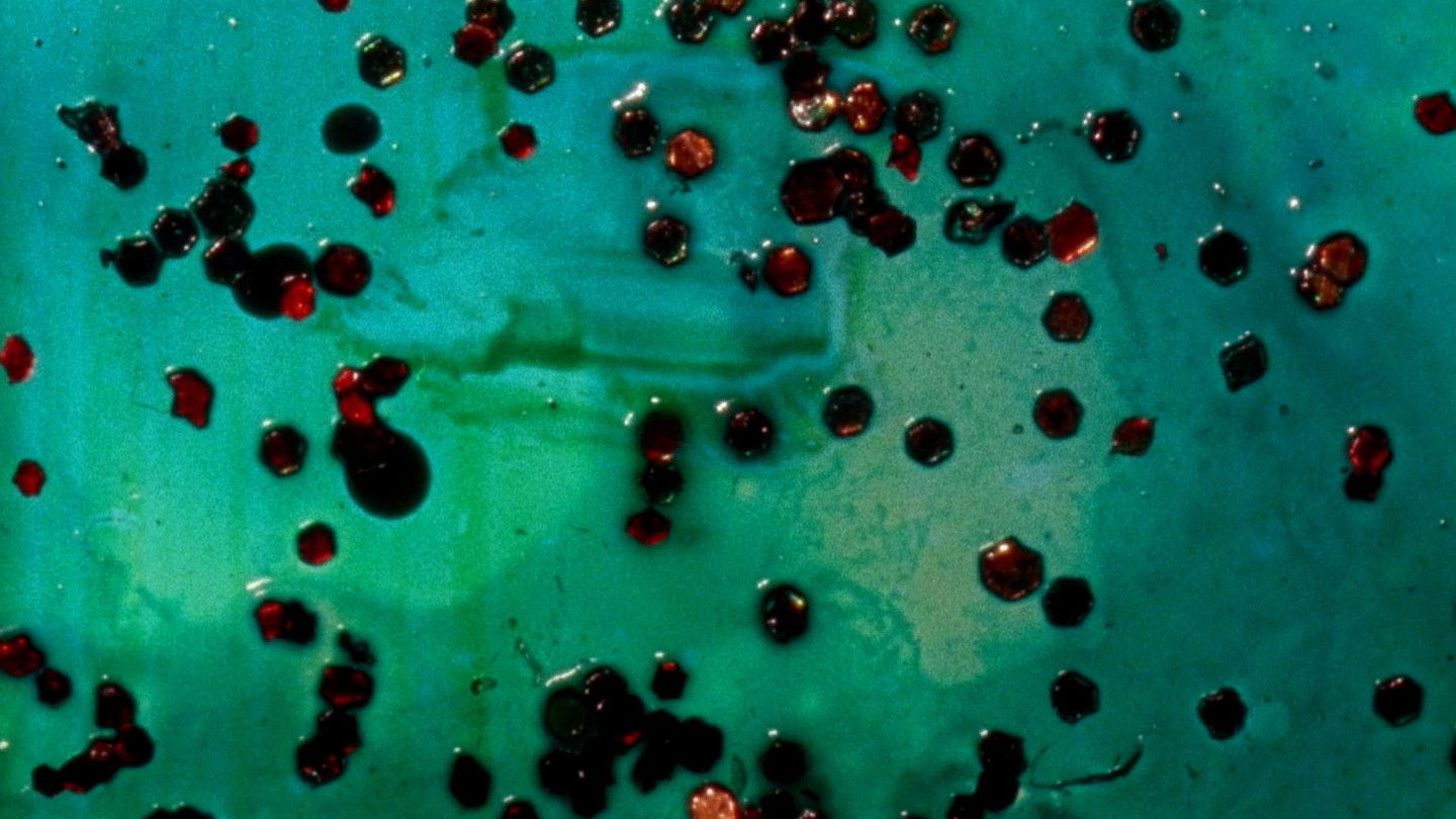 Anything but gray, a color explosion sparkles, bubbles, and fractures in this hand-crafted 16mm film. Reeves utilized an array of mediums and direct-on-film techniques to create this exuberant, psychedelic morsel of cinema as material. But it speaks of the end of one era or another, a time for letting go and celebration. Control triumphs over disorder. Reeves mixed samples from rusty, dusty old machines, records, and electric waves to create an aural passage through technological progress.