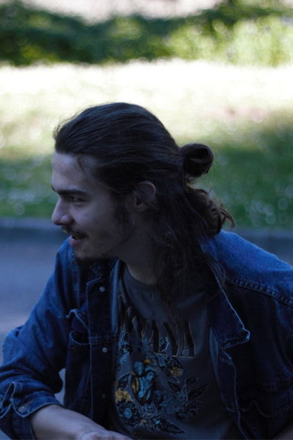 A young man test paint. Little by little, the software will come to life...