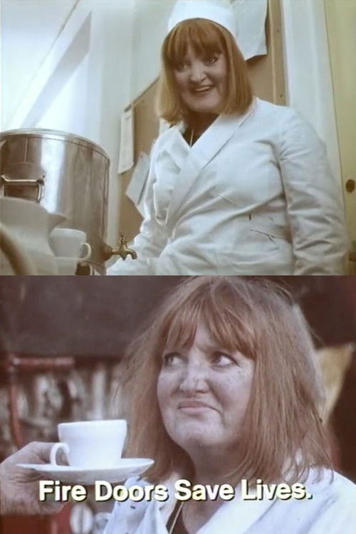 Ada the office Tea Lady wiggles herself and her clanking trolley backwards pushing open a fire door with her Behind. A critical smoking office worker supplies a door wedge and mocks the rules about keeping the door closed at all times. Due to carelessness they stubs out a cigar before they leave the office. After the building has burned down rescued sheepish Tea Lady Ada is subsequently seen being handed a cup of tea by a sympathetic fireman.