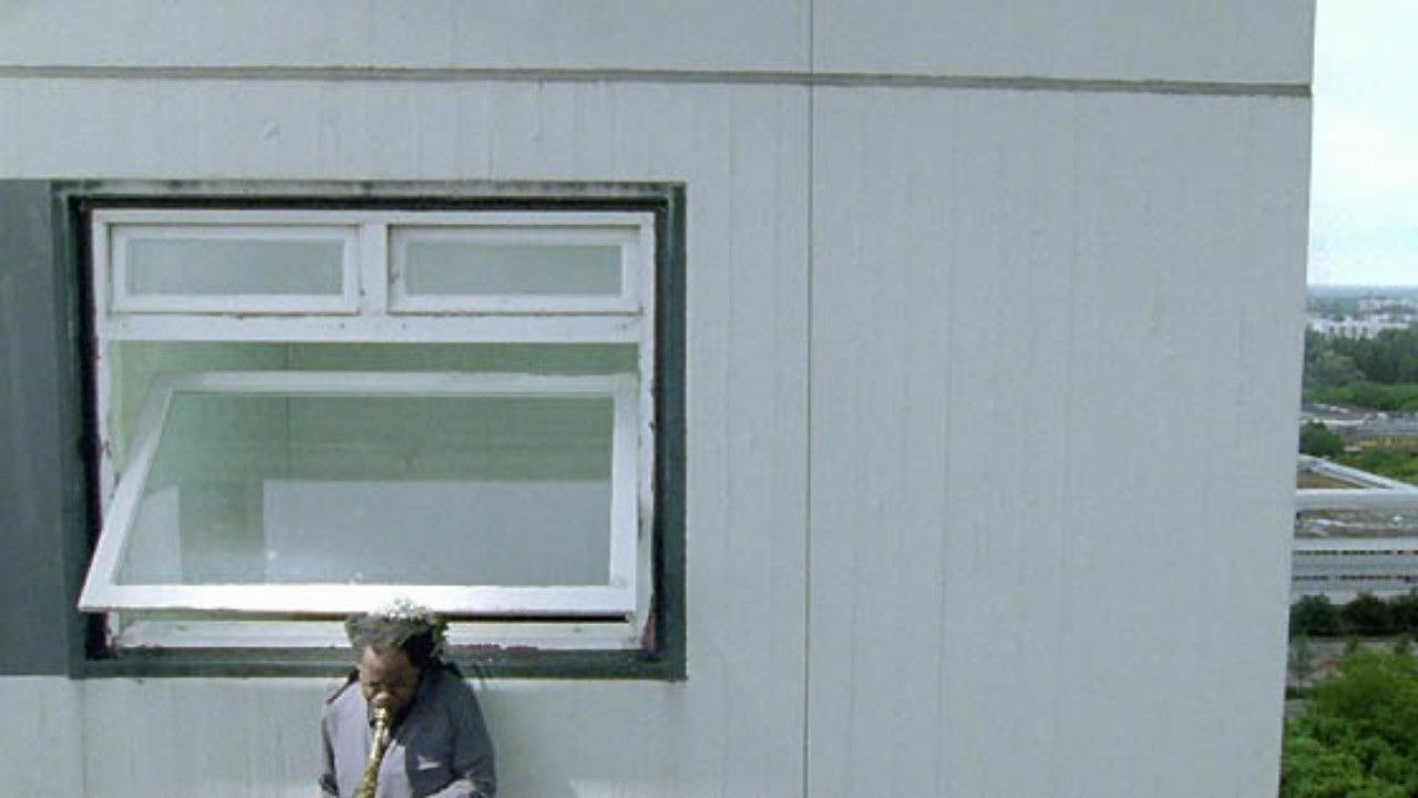 Long Sorrow (2005), filmed on a public housing estate in Berlin, is an enigmatic record of a performance orchestrated by the artist. Sala invited noted free jazz musician Jemeel Moondoc to perform while suspended outside the window of an empty apartment on the eighteenth floor. For the Serpentine, Sala staged the performance 3-2-1 (2011), in which saxophonists Andre Vida and Caroline Kraabel responded live to Long Sorrow in a series of daily performances. 3-2-1 begins with one of these saxophonists accompanying an audio recording of Moondoc’s improvisation with his own earlier performance on film, resulting in a ‘trio’: the film, the audio recording and the live performance. The saxophonist at the Serpentine then played live with Long Sorrow, a ‘duet’, before finally performing a solo after the film ended. 3-2-1 punctuated the fixed cycle of the show with an improvised element, integrating the strands of film and performance that run through Sala’s work.