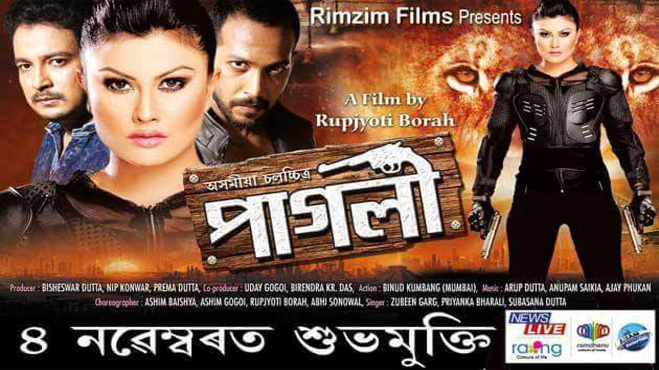 Paglee is an Assamese language romantic action film directed by Rupjyoti Borah.This film features Nayan Nirban Baruah and Prastuti Parashar in lead role.This film produced and distributed by Rimzim Films. A simple woman loses her sense of direction and takes the law in her own hands by becoming a gun-wielding justice-seeker.