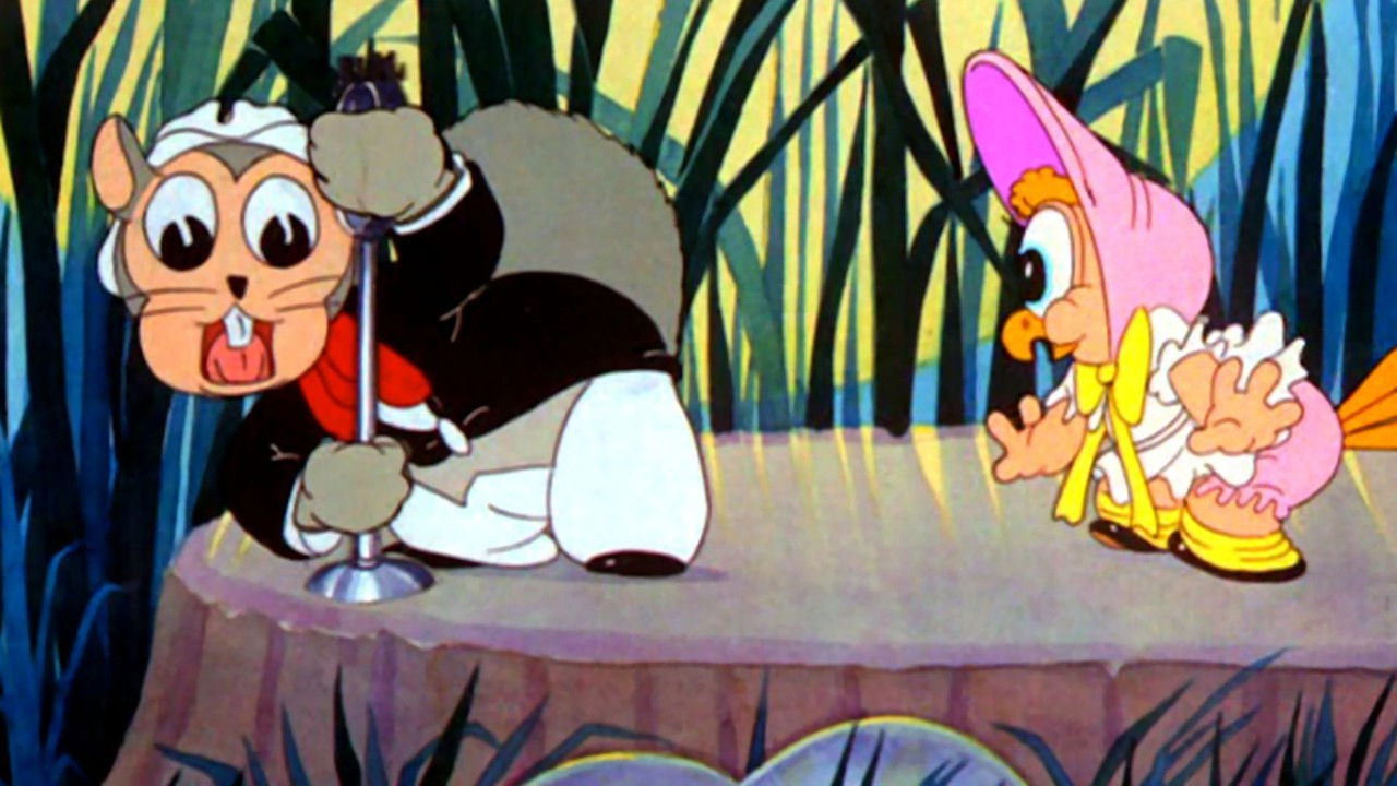 Forest animals participate in the Woodland Community Swing Variety Show on radio station KUKU.