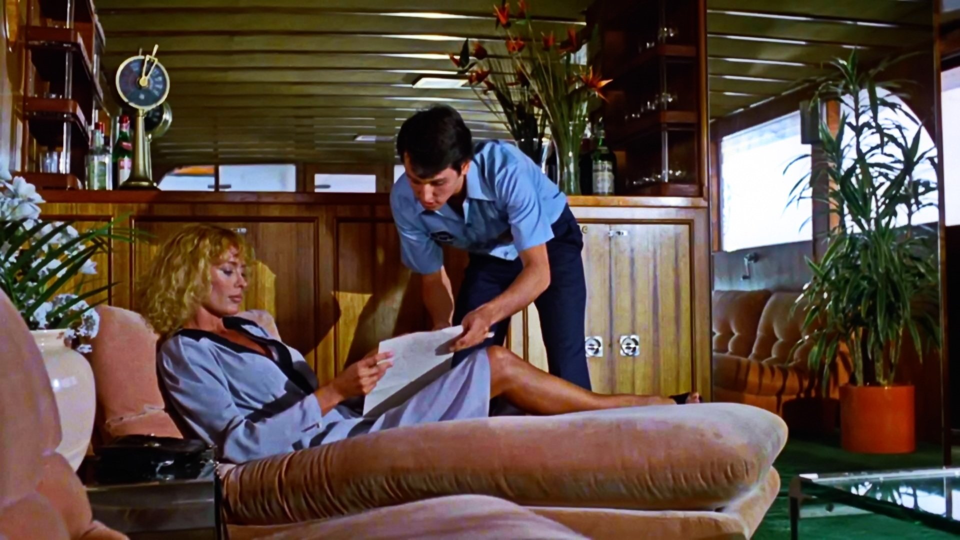 A married college professor decides to seduce her student, whom she hired as a handyman for her yacht. The hesitant student succumbs to his buxom professor, but their romance is interrupted by her corrupt husband and a masked murderer.