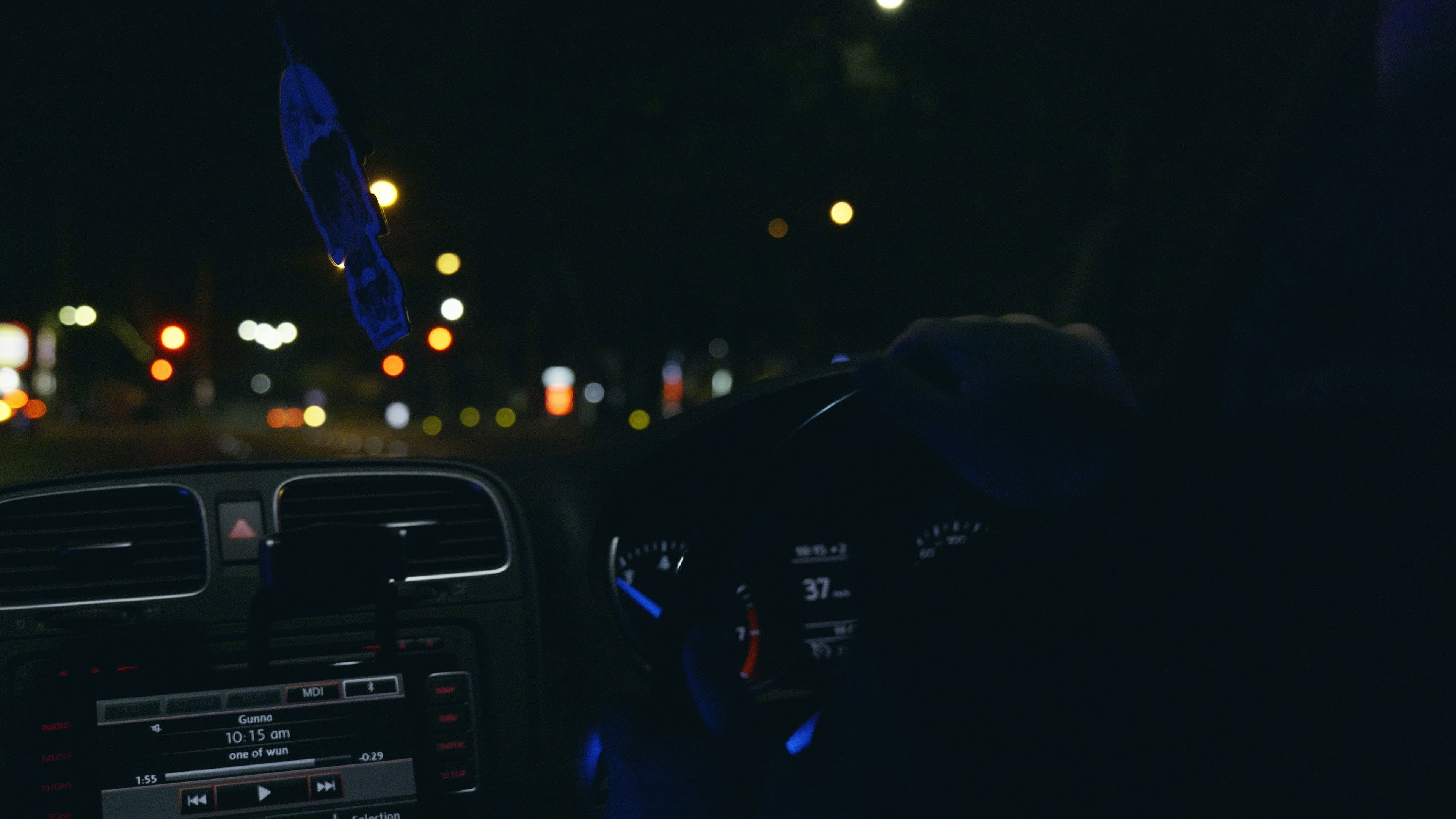 A car drives erratically through the dark streets. Eager to arrive somewhere.