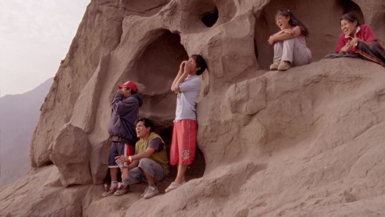 A group of friends walk across the sandy outskirts of Lima in order to pay their respects to a fallen gang member.