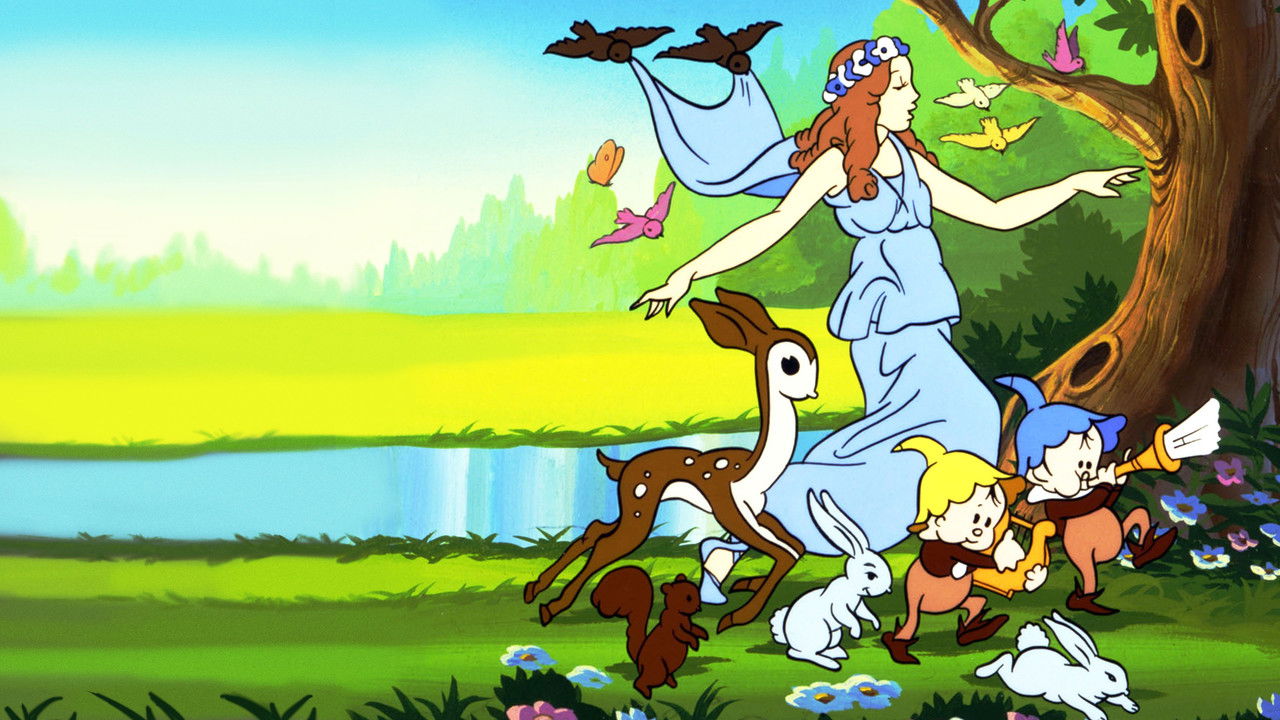 The goddess is greeted by dancing flowers and fairies. The devil comes and takes her away to be his queen. She's despondent, as winter settles in above ground. But the devil isn't happy either, and offers anything to make her happy. They reach an agreement: she'll spend six months above ground and six below. Thus we have seasons.