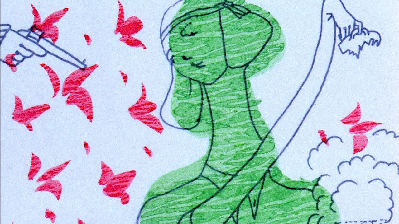 Painted and drawn figures and shapes move to a soundtrack of rapidly changing radio broadcasts.